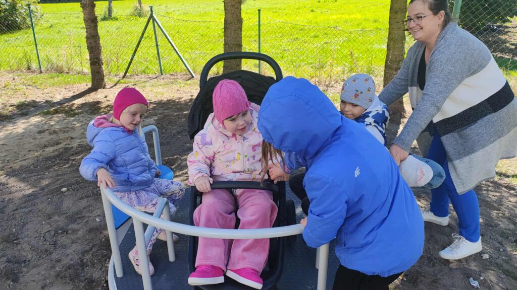Fundacja DziekiTobie.pl i KilometryZbieramy.pl wsparła nasze przedszkole kwotą 15 000 zł, która została przeznaczona na zakup karuzeli integracyjnej – dostosowanej również dla dzieci poruszających się na wózkach inwalidzkich.