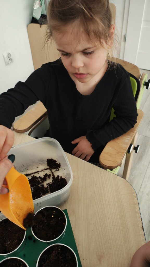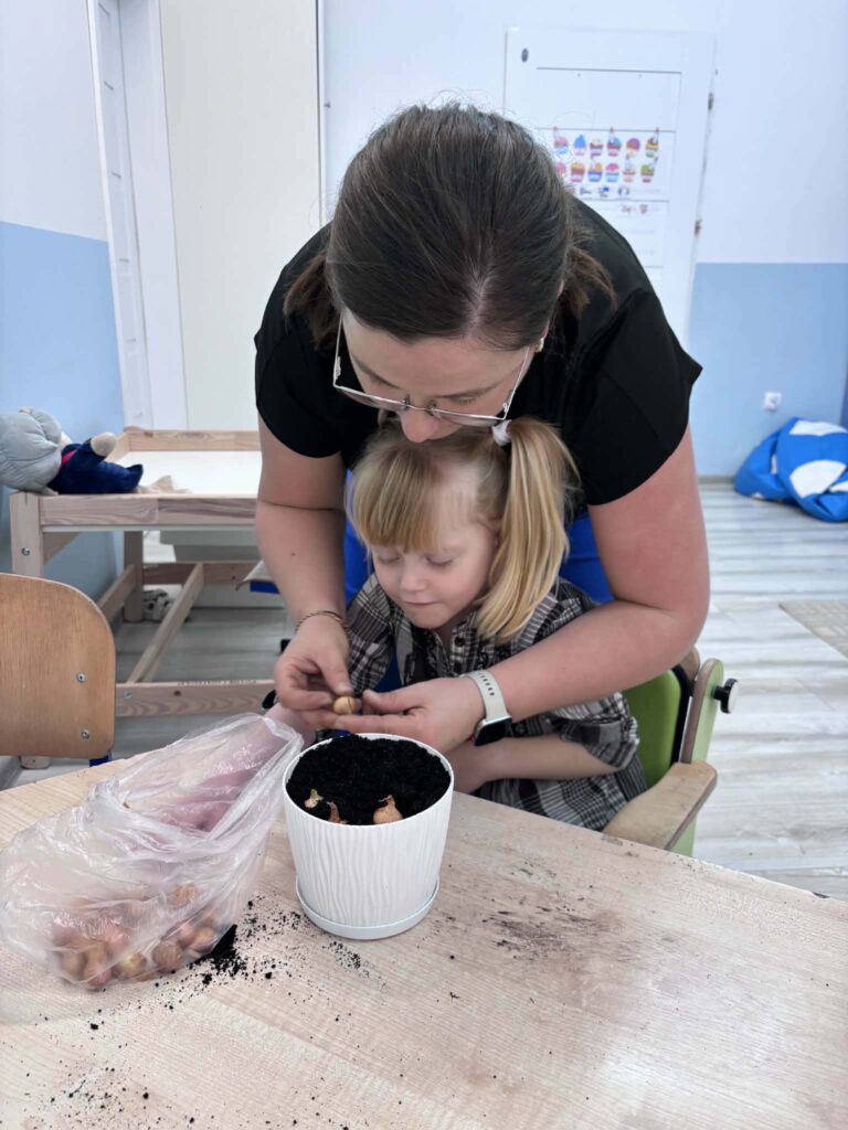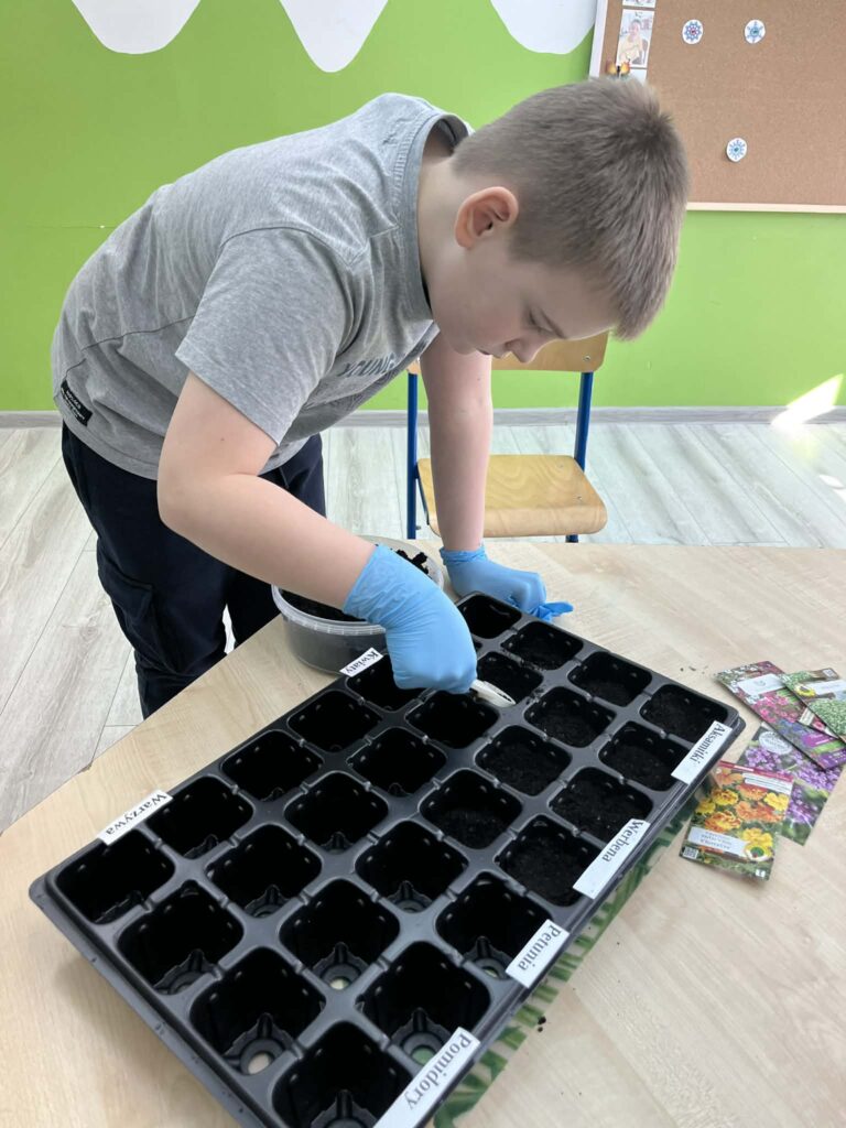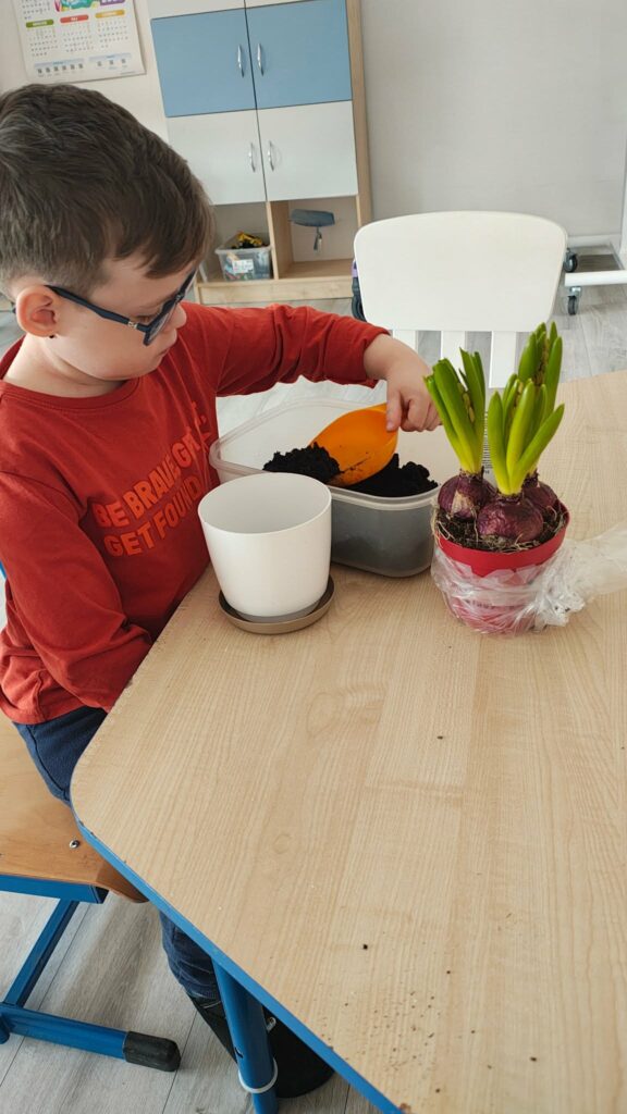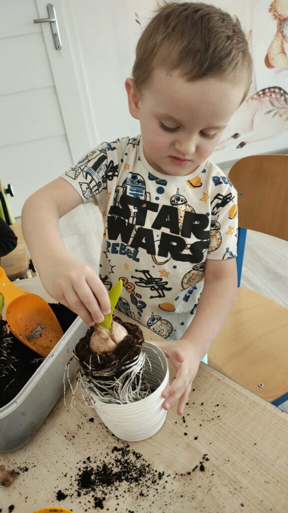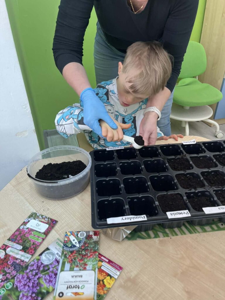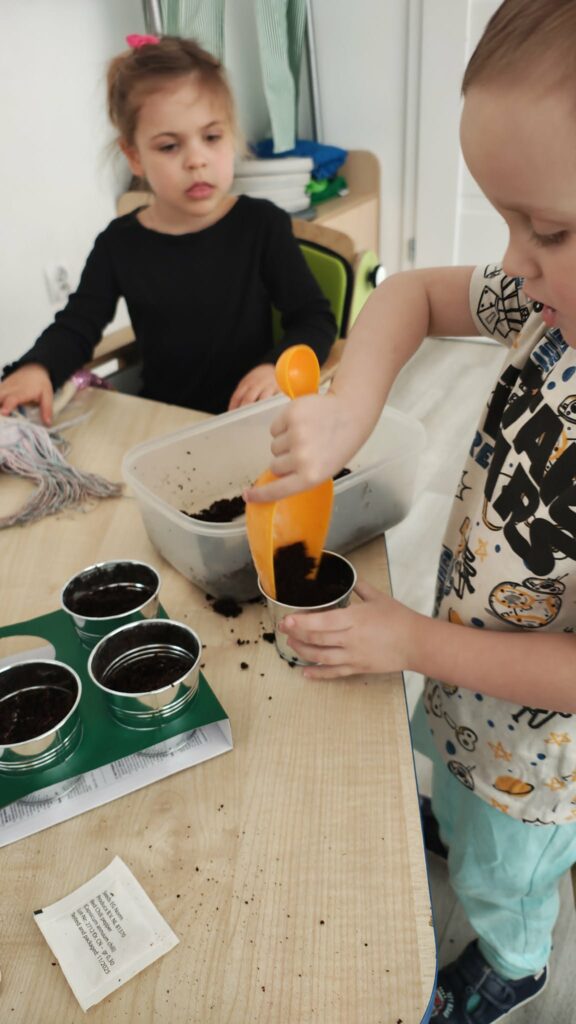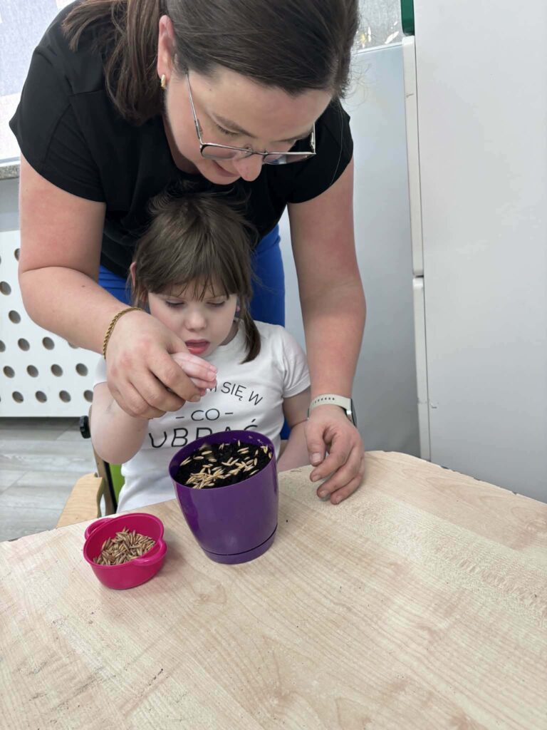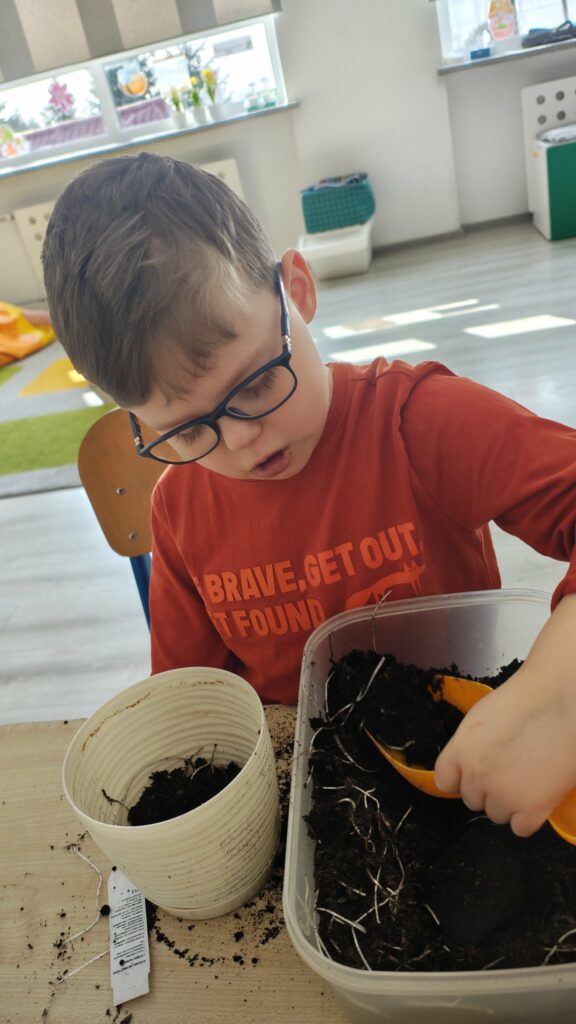 Była to świetna okazja do nauki przez działanie – dzieci mogły zobaczyć, jak wygląda proces sadzenia, dotknąć ziemi, poznać nasiona i dowiedzieć się, czego rośliny potrzebują, aby rosnąć.